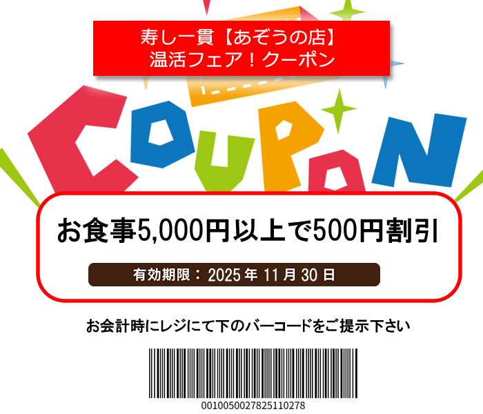 寿し一貫【あぞうの店】温活フェアクーポン!