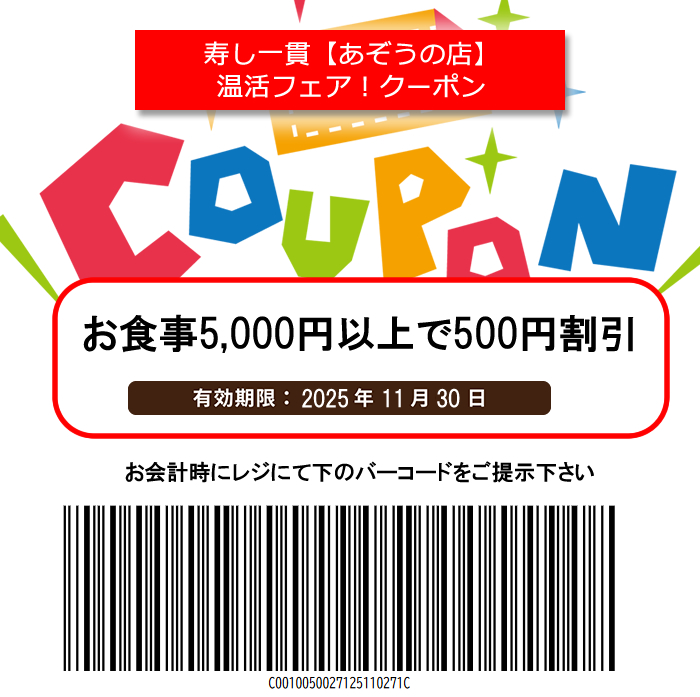 寿し一貫【あぞうの店】温活フェアクーポン!