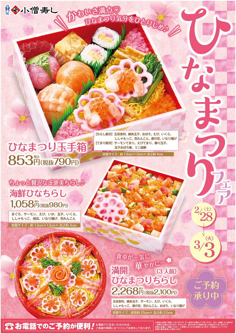 小僧寿し、ひなまつりフェア!【ご予約承り中】