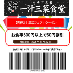 一汁三菜食堂【青柳店】温活フェアクーポン!
