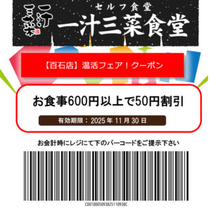 一汁三菜食堂【百石店】温活フェアクーポン!