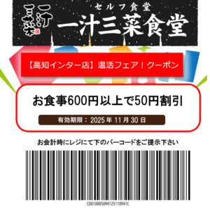 一汁三菜食堂【高知インター店】温活フェアクーポン!