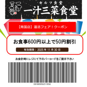 一汁三菜食堂【南国店】温活フェアクーポン!
