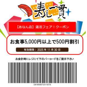 寿し一貫【あなん店】温活フェアクーポン!