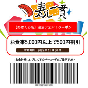 寿し一貫【あさくら店】温活フェアクーポン!
