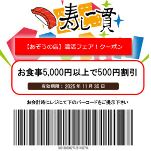 寿し一貫【あぞうの店】温活フェアクーポン!