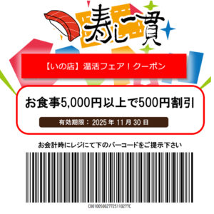 寿し一貫【いの店】温活フェアクーポン!