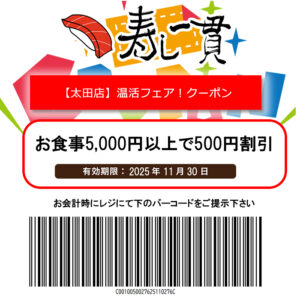 寿し一貫【太田店】温活フェアクーポン!