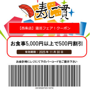 寿し一貫【西条店】温活フェアクーポン!