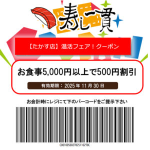 寿し一貫【たかす店】温活フェアクーポン!