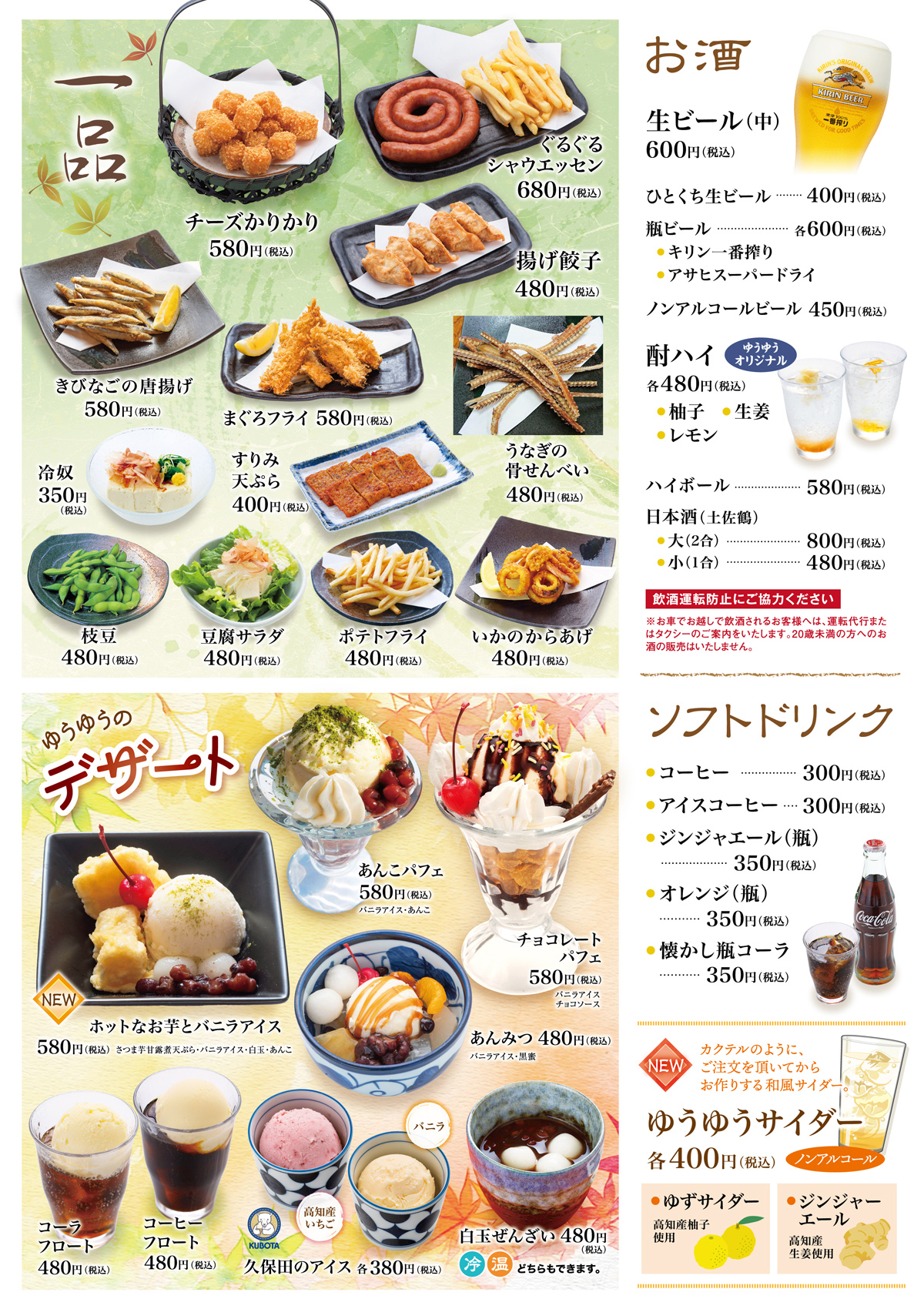 ゆうゆうの「お店のメニュー」をお持ち帰りに!